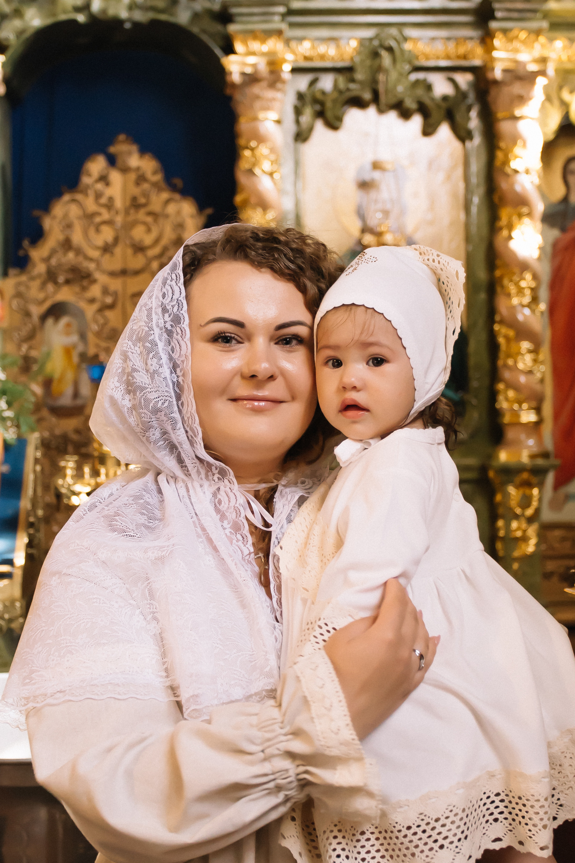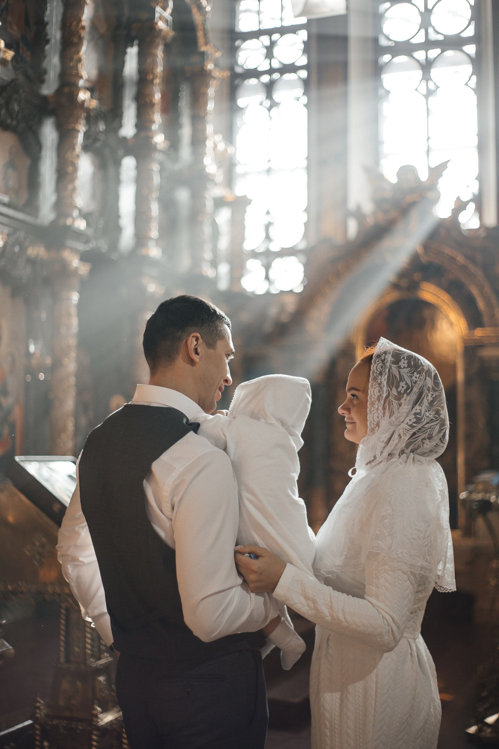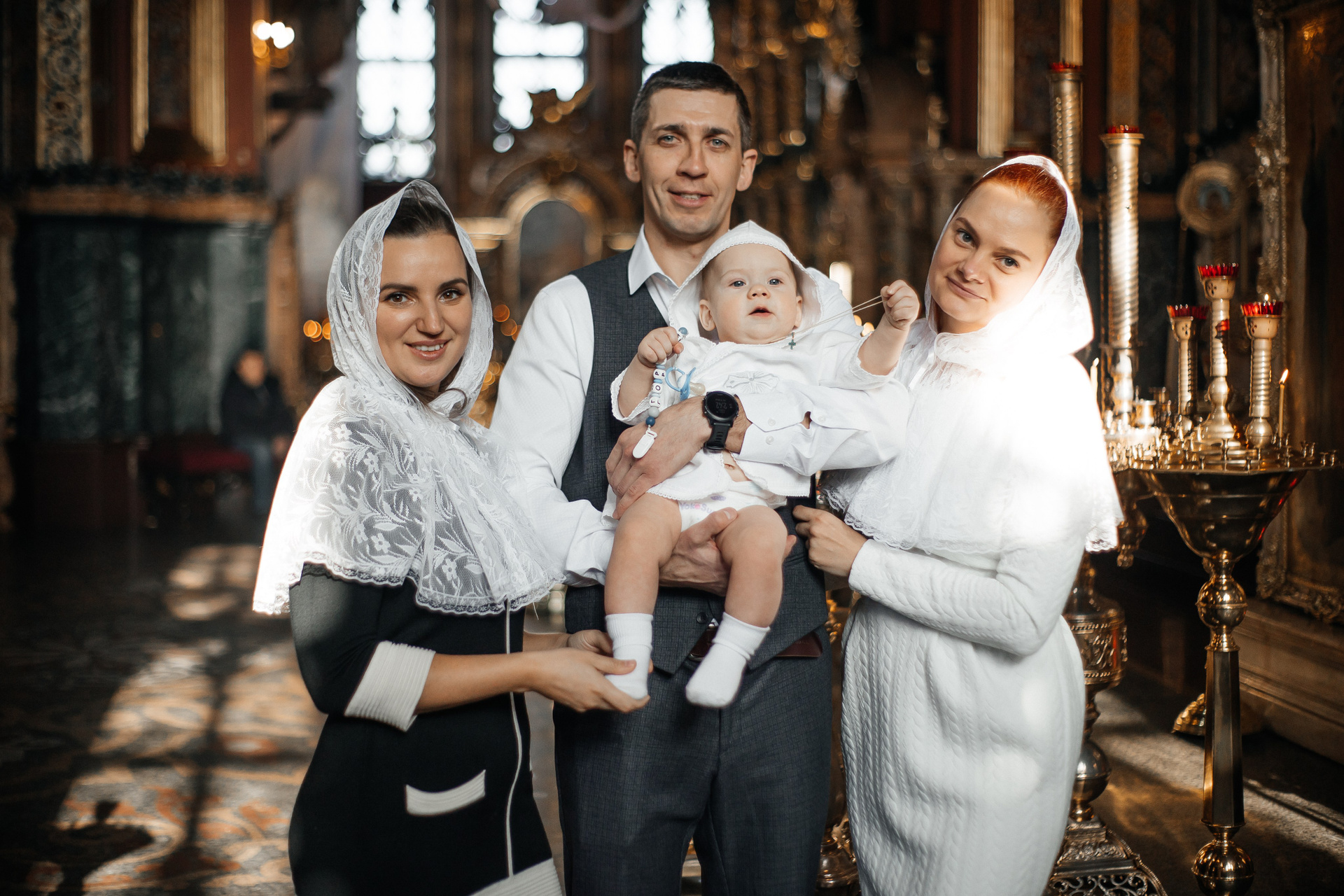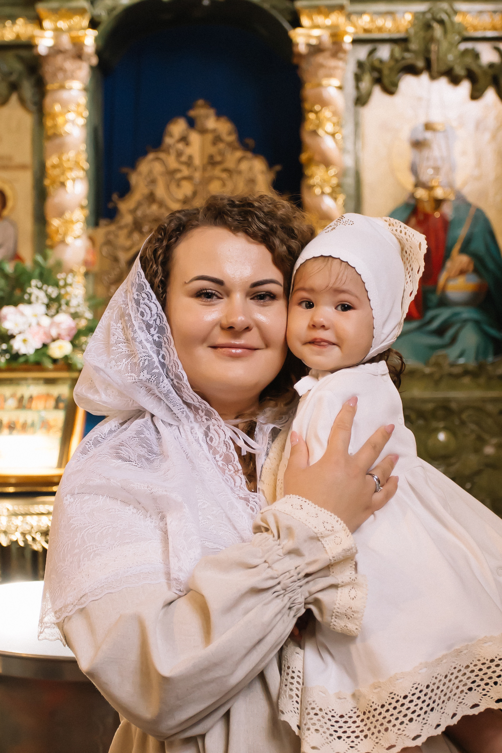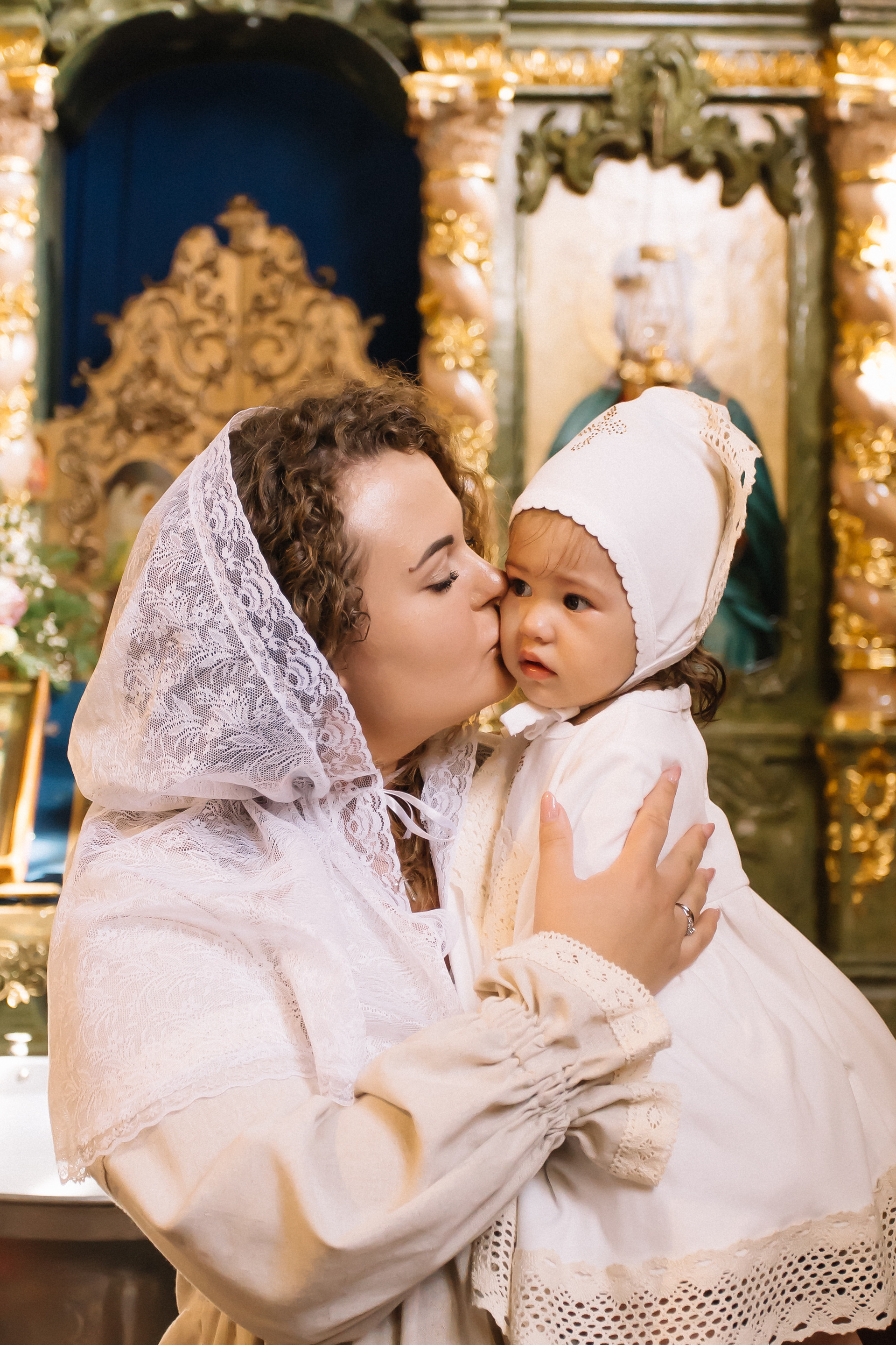 По организации. Обычно фотограф приезжает на Крещение за 30 минут до начала. Мы встречаемся около церкви, делаем общее фото, родителей с малышом, крестных, бабушек, снимаемся на фоне храма, я даю рекомендации крестным, как лучше стоять и держать ребенка. Дальше — фотосъемка непосредственно Таинства, после — можно попросить батюшку сфотографироваться с вами в Храме, сделав общую фотографию. А, если малыш в настроении — несколько постановочных кадров с мамой, папой.