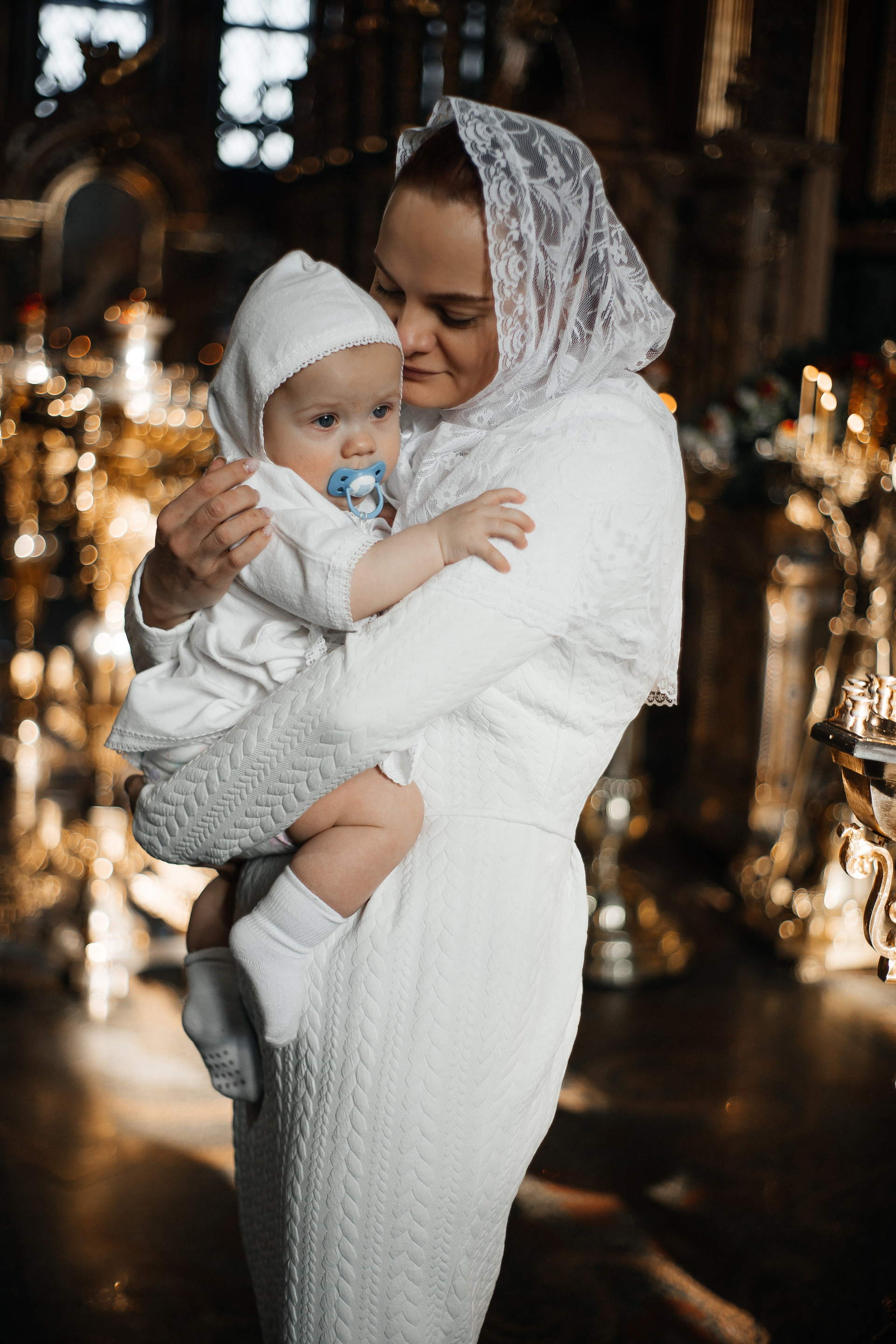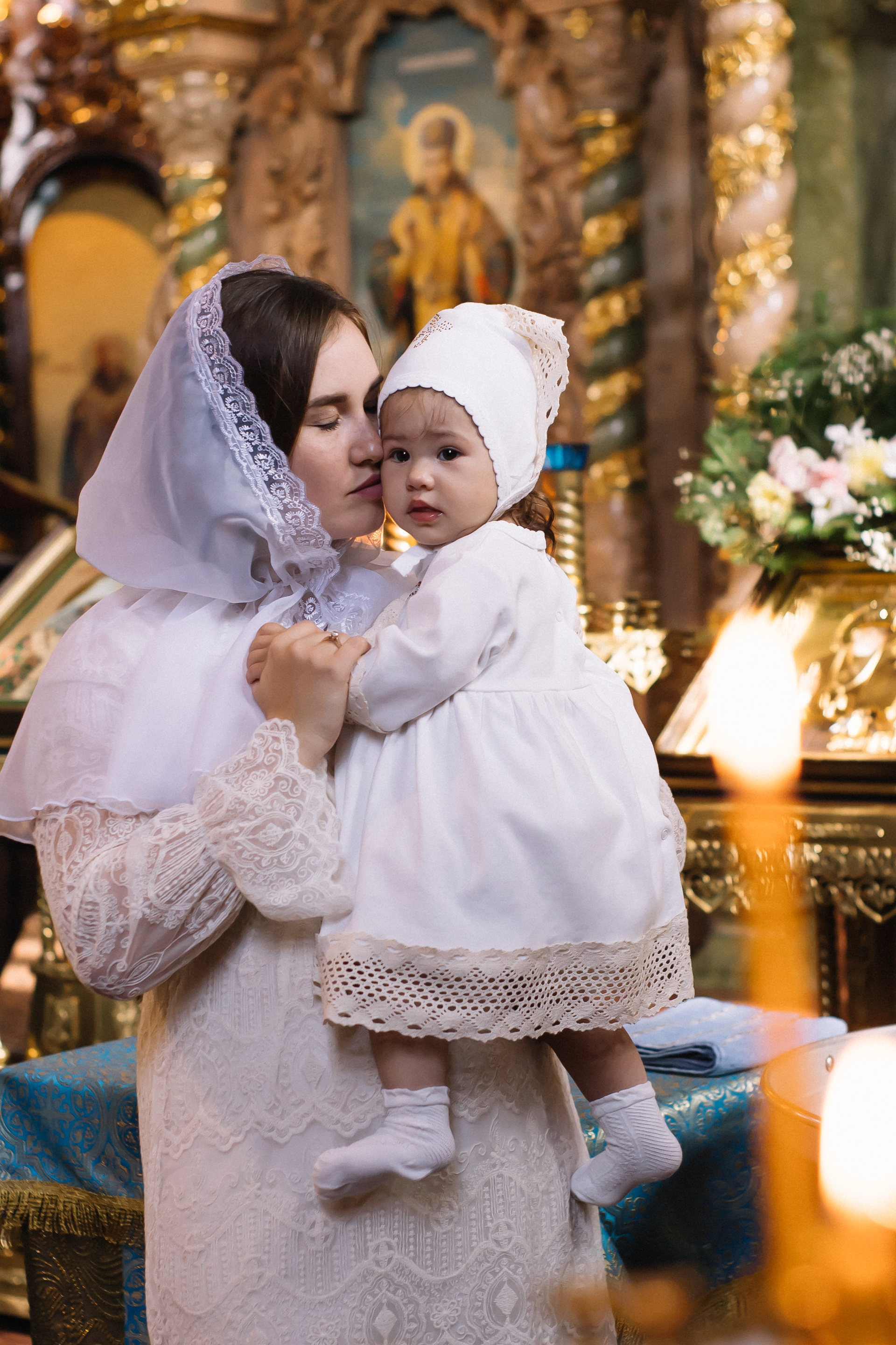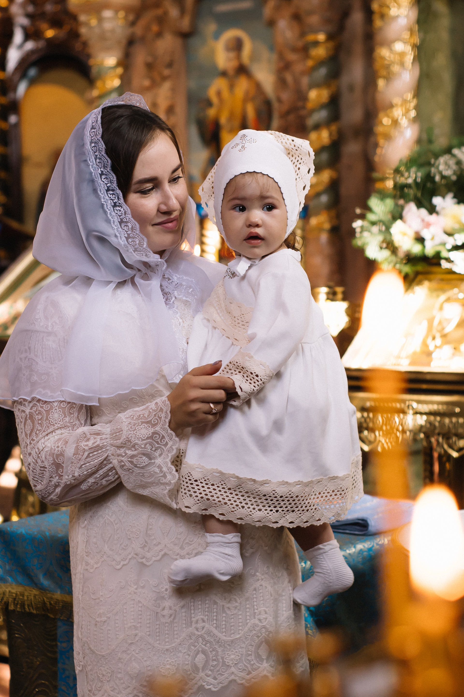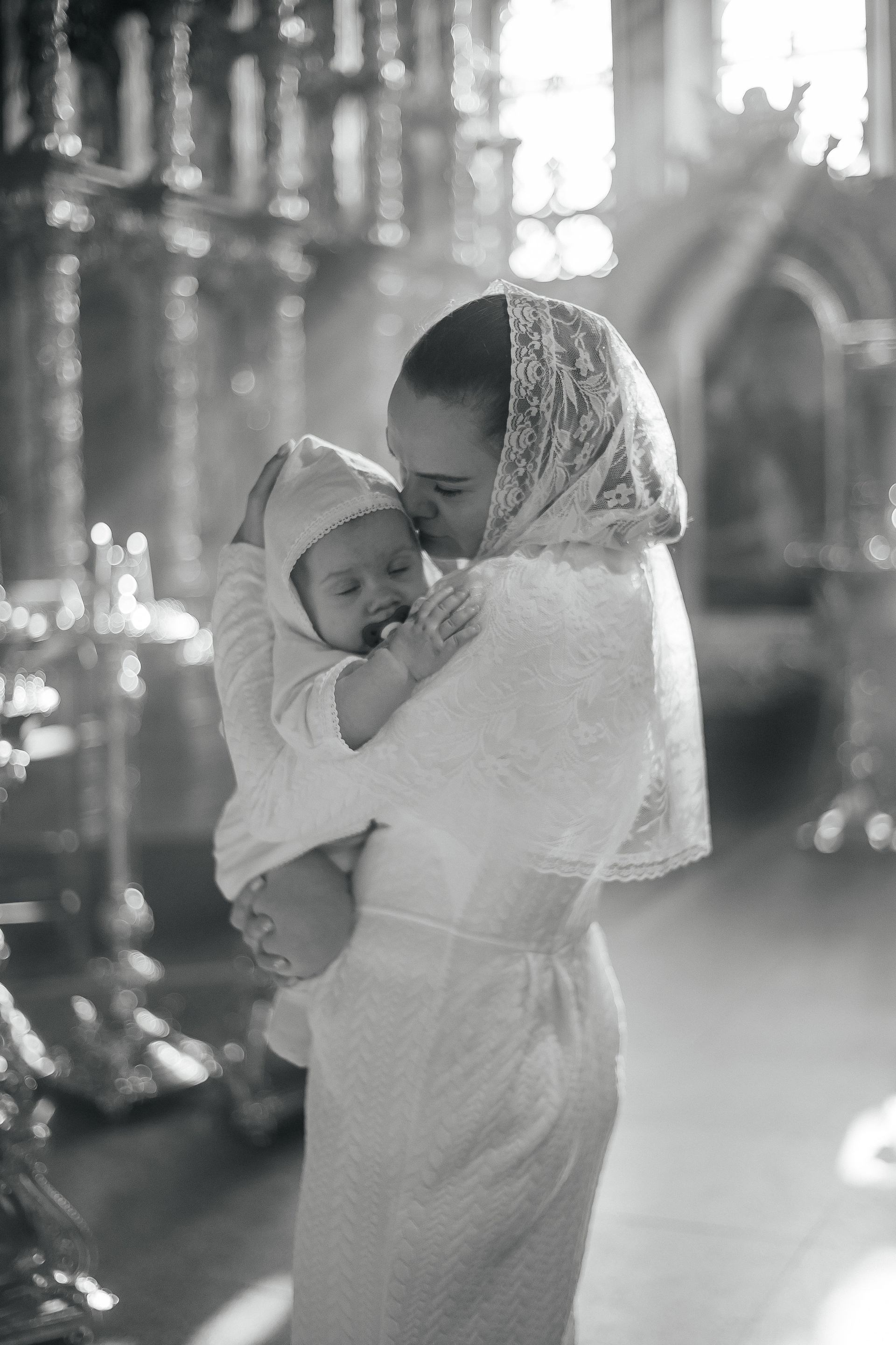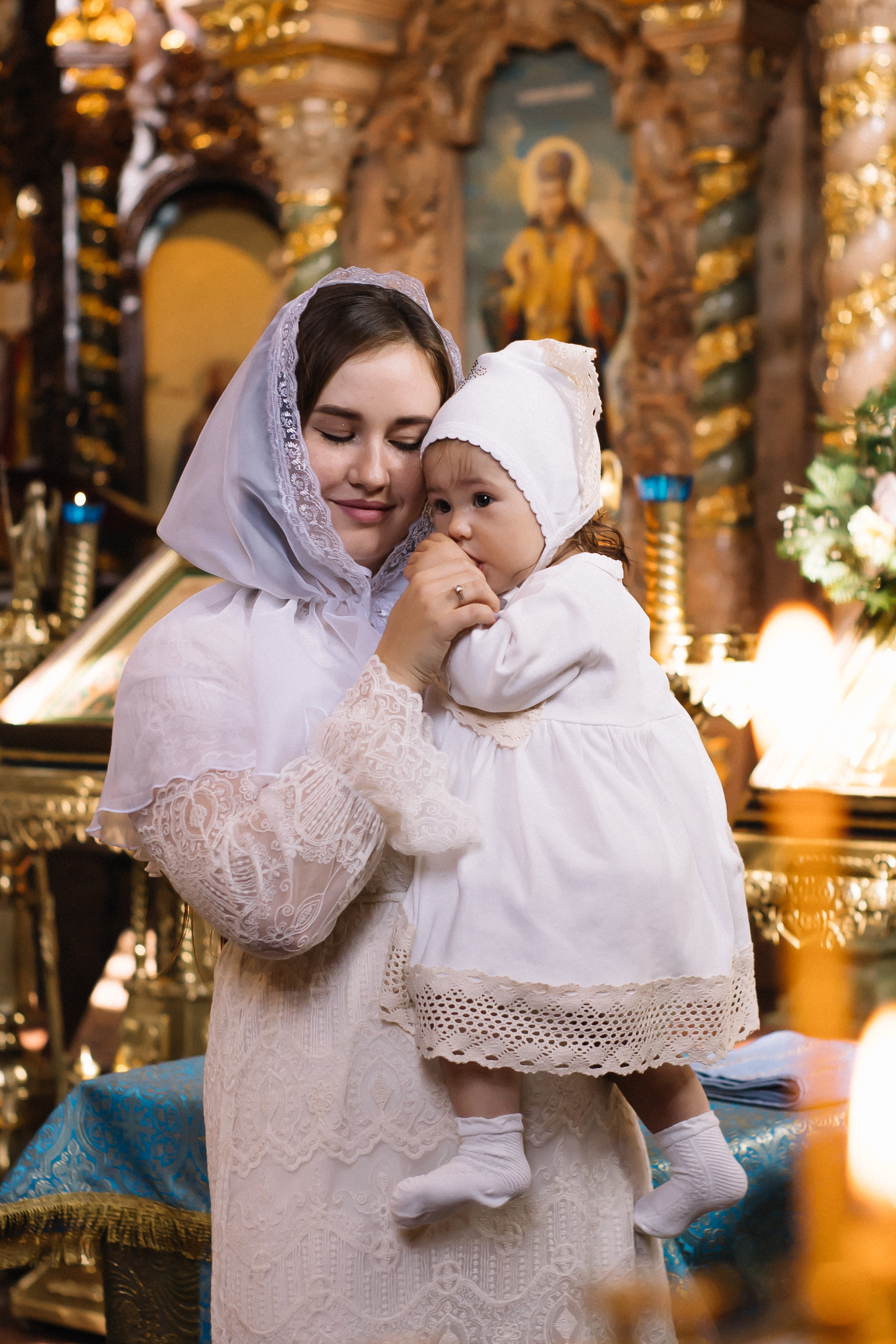 По организации. Обычно фотограф приезжает на Крещение за 30 минут до начала. Мы встречаемся около церкви, делаем общее фото, родителей с малышом, крестных, бабушек, снимаемся на фоне храма, я даю рекомендации крестным, как лучше стоять и держать ребенка. Дальше — фотосъемка непосредственно Таинства, после — можно попросить батюшку сфотографироваться с вами в Храме, сделав общую фотографию. А, если малыш в настроении — несколько постановочных кадров с мамой, папой.