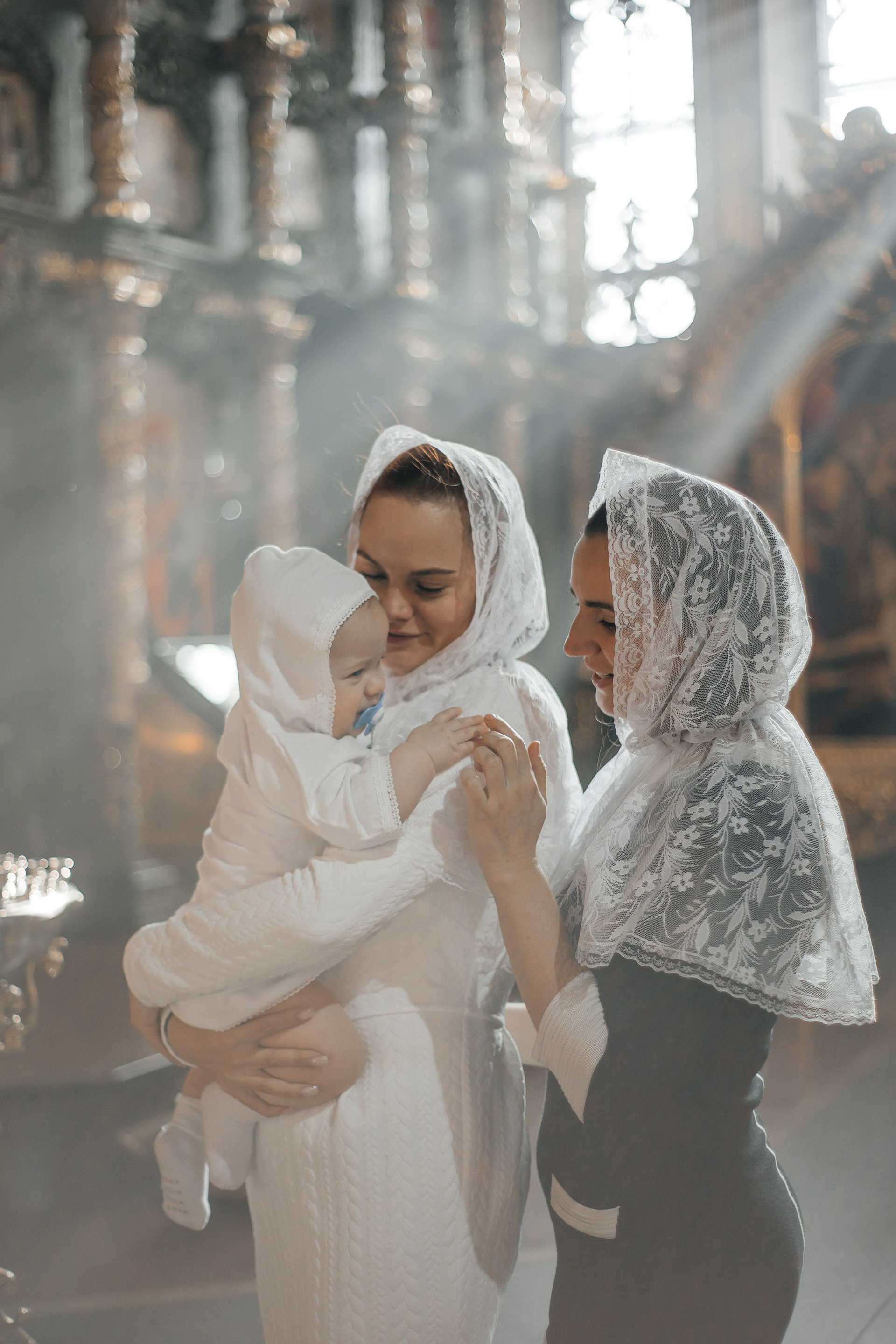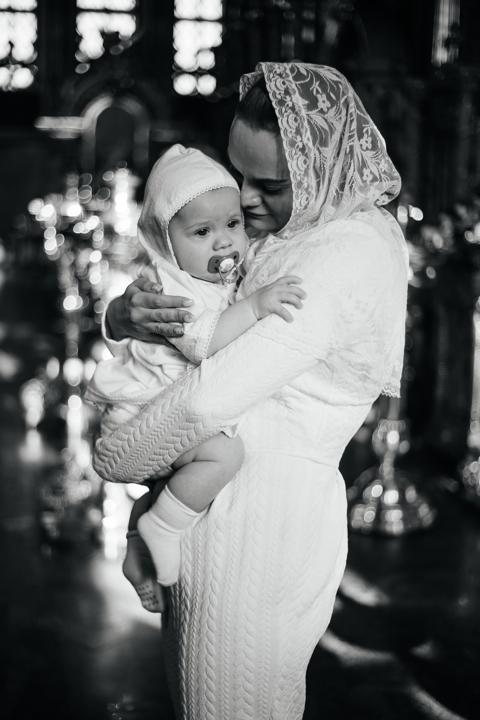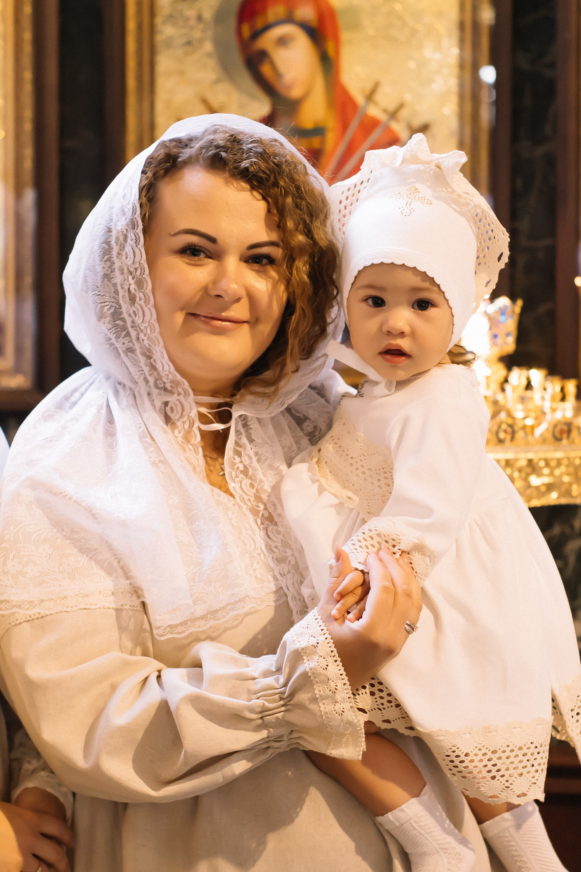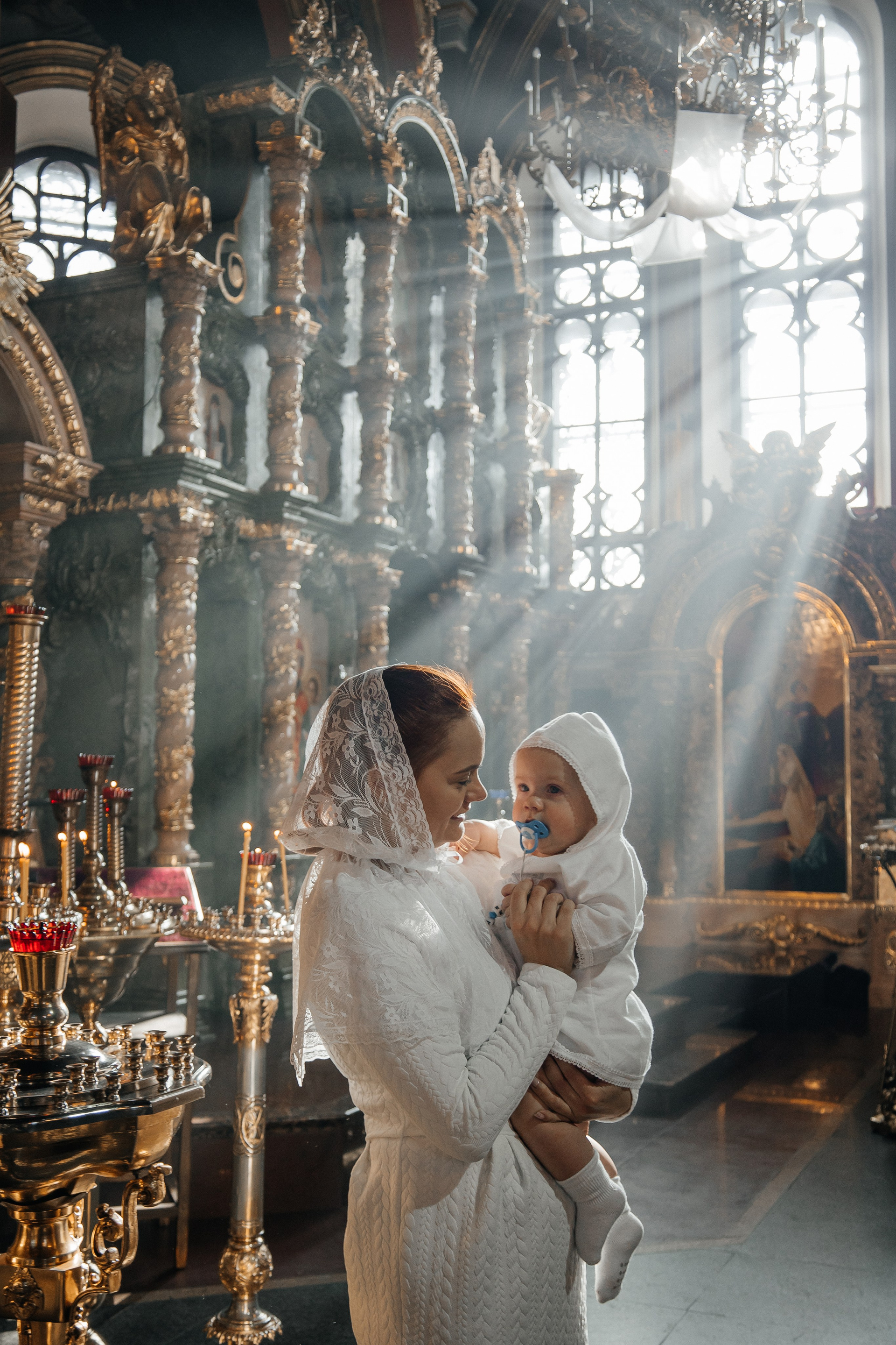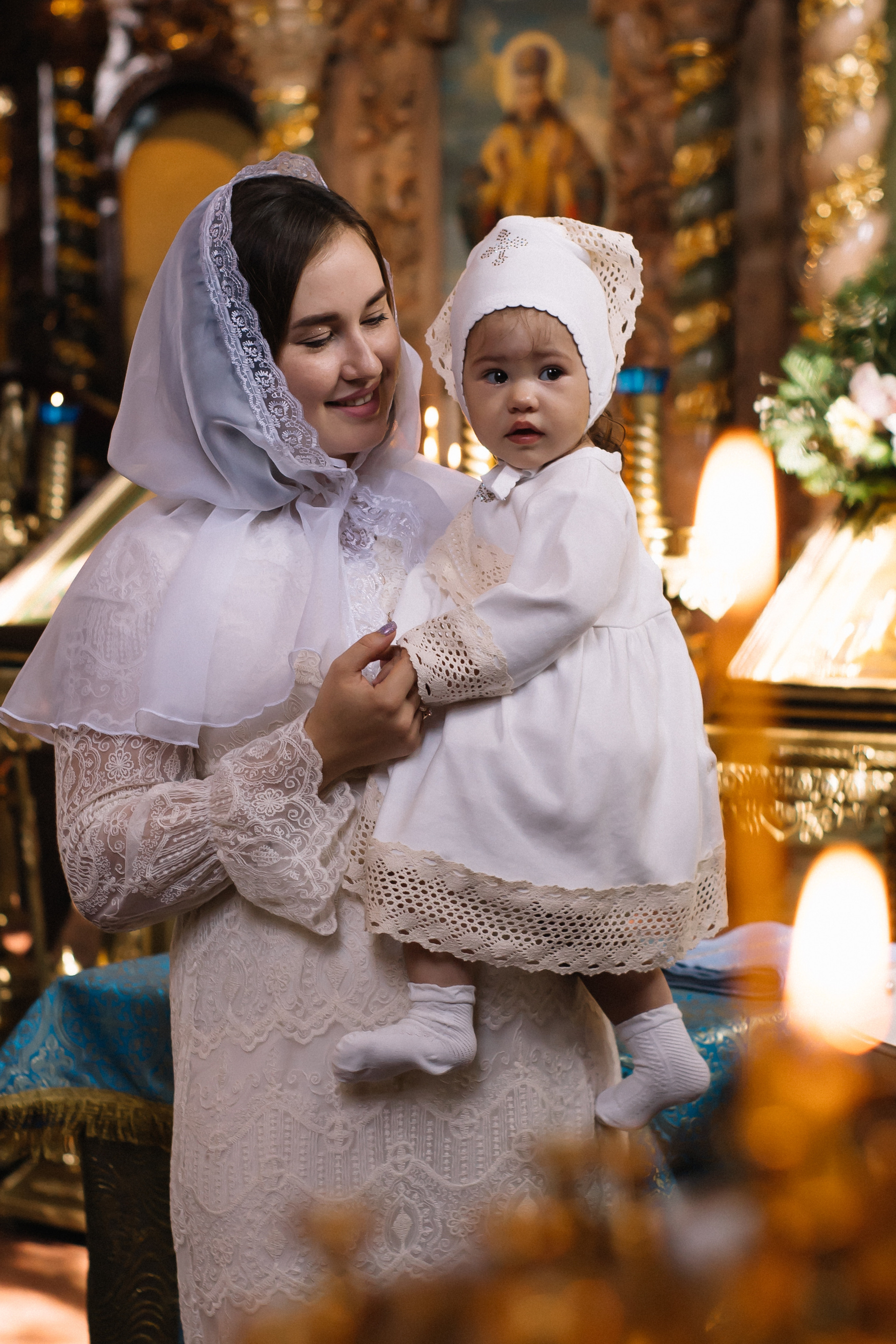 По организации. Обычно фотограф приезжает на Крещение за 30 минут до начала. Мы встречаемся около церкви, делаем общее фото, родителей с малышом, крестных, бабушек, снимаемся на фоне храма, я даю рекомендации крестным, как лучше стоять и держать ребенка. Дальше — фотосъемка непосредственно Таинства, после — можно попросить батюшку сфотографироваться с вами в Храме, сделав общую фотографию. А, если малыш в настроении — несколько постановочных кадров с мамой, папой.