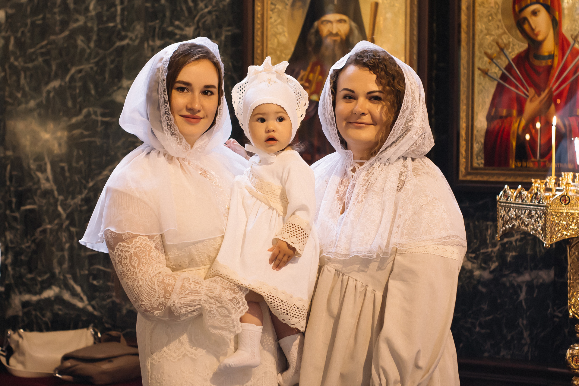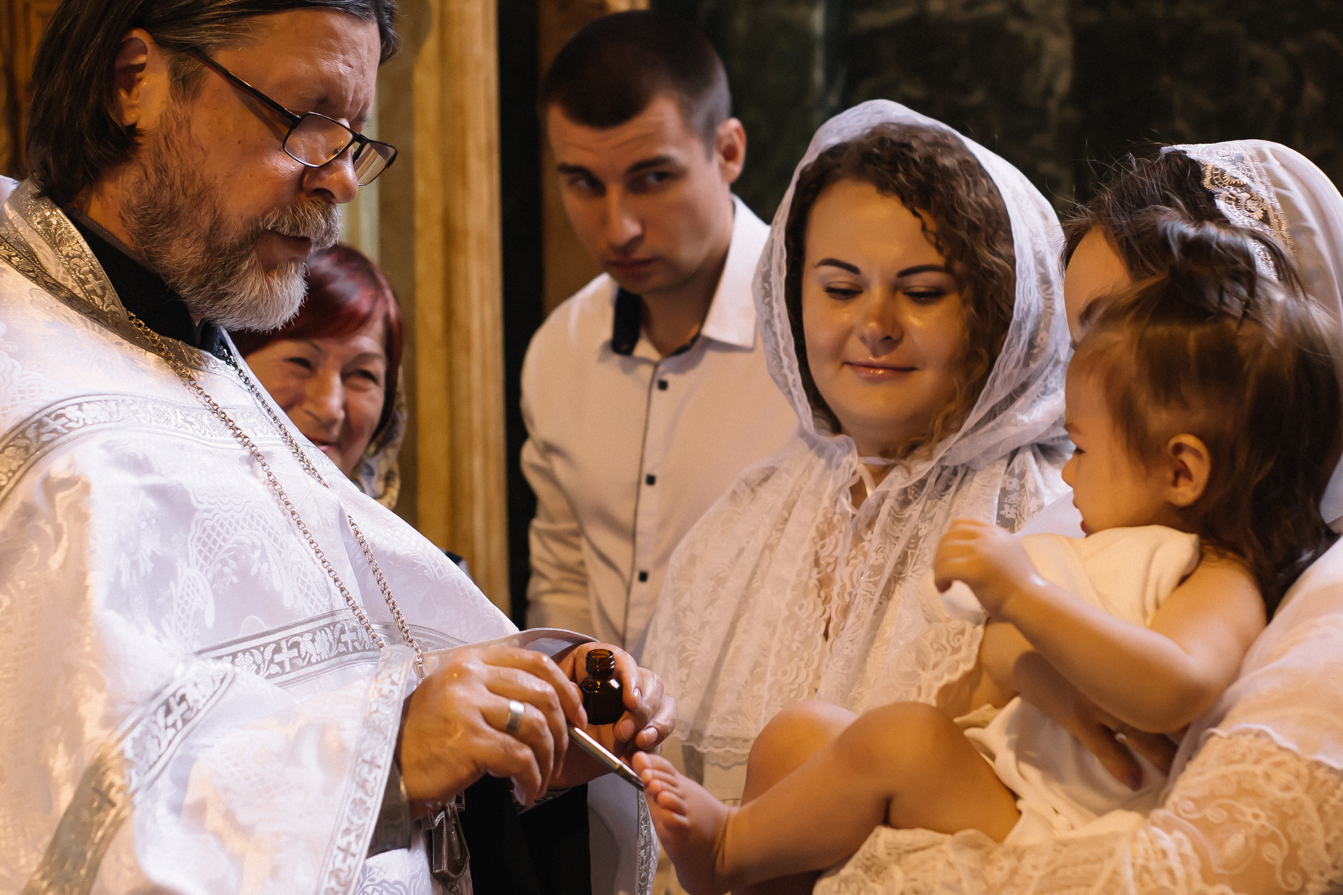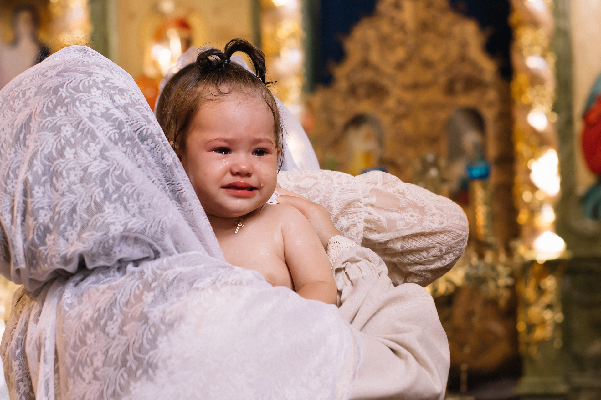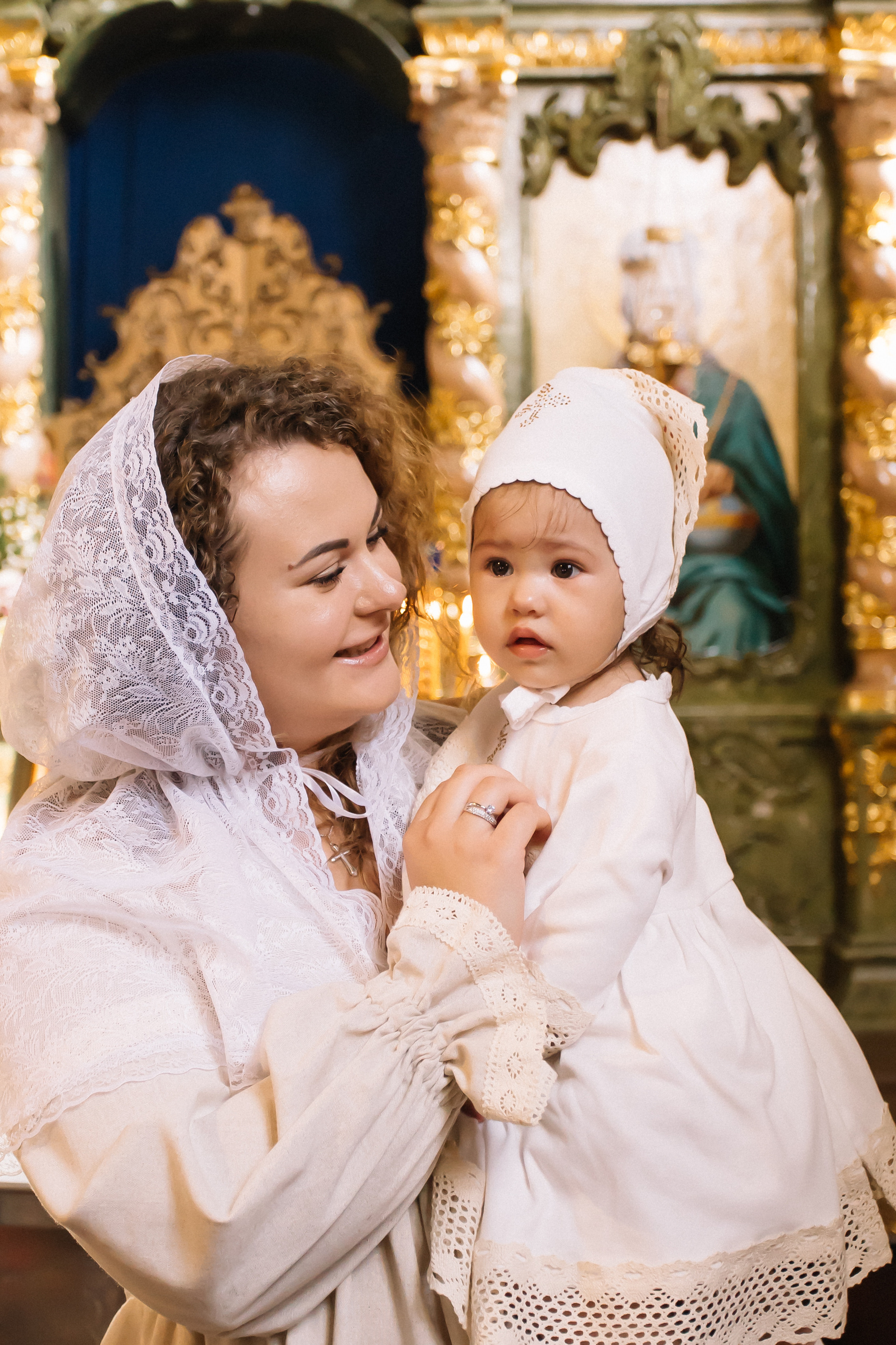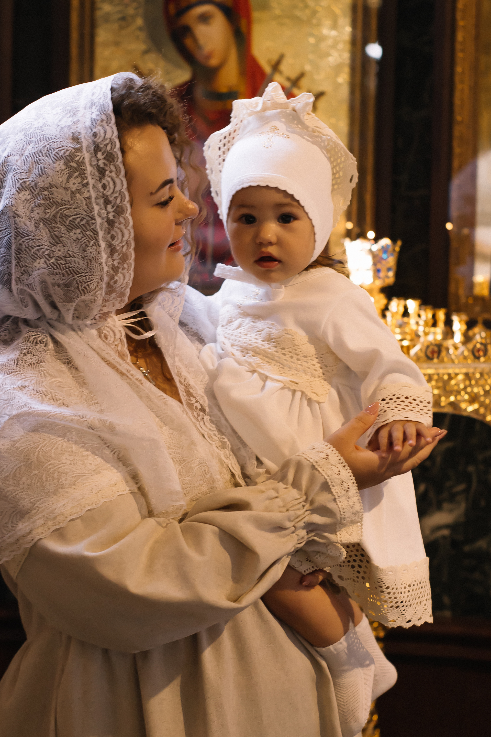 По организации. Обычно фотограф приезжает на Крещение за 30 минут до начала. Мы встречаемся около церкви, делаем общее фото, родителей с малышом, крестных, бабушек, снимаемся на фоне храма, я даю рекомендации крестным, как лучше стоять и держать ребенка. Дальше — фотосъемка непосредственно Таинства, после — можно попросить батюшку сфотографироваться с вами в Храме, сделав общую фотографию. А, если малыш в настроении — несколько постановочных кадров с мамой, папой.