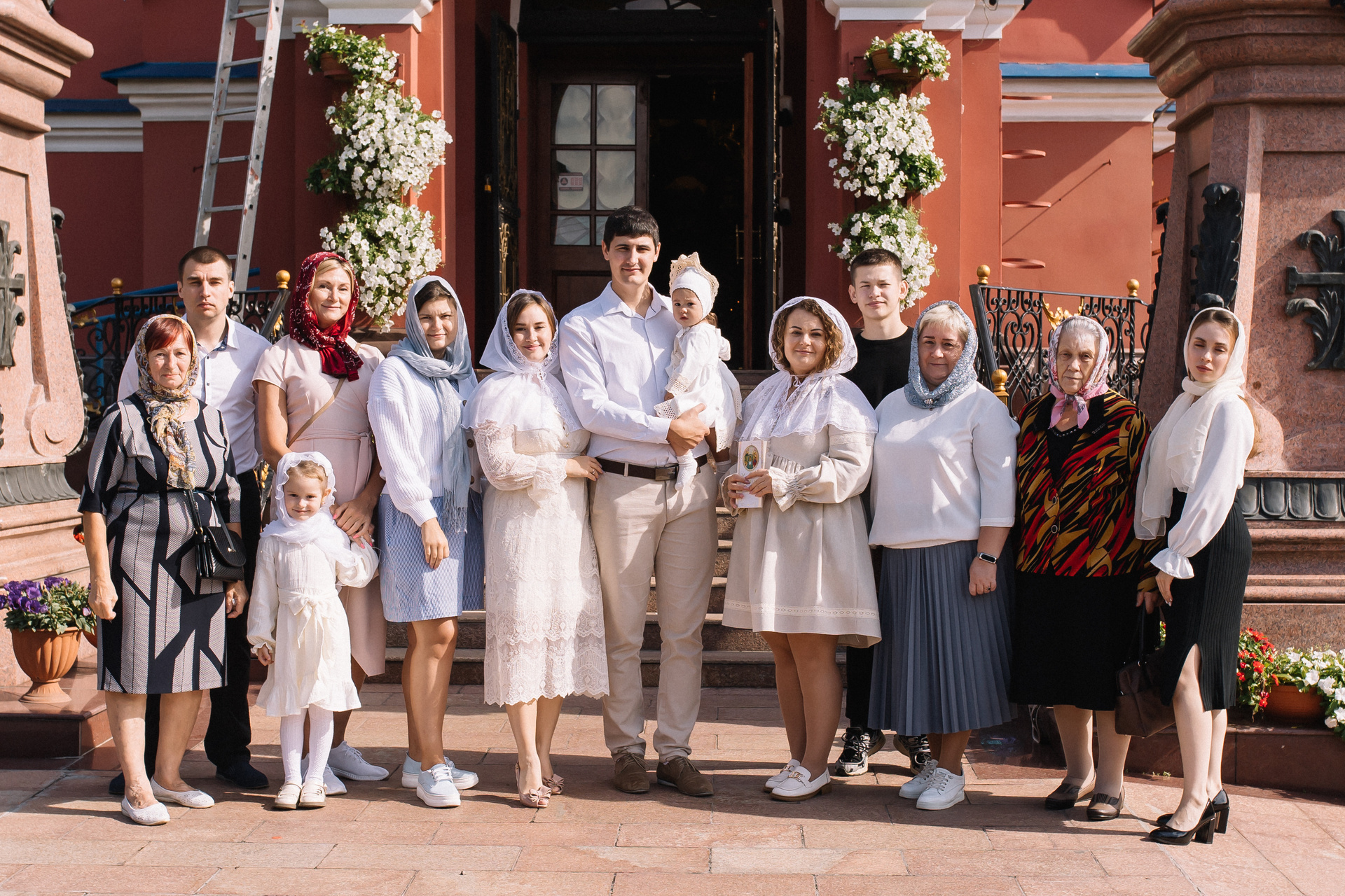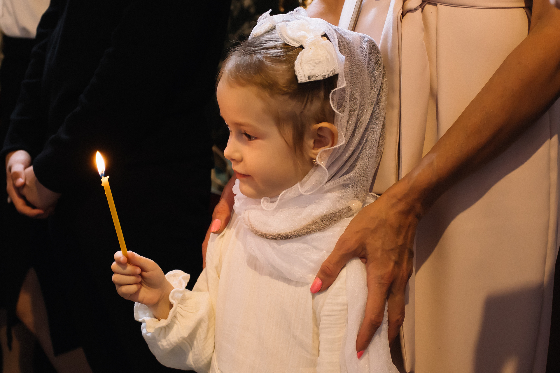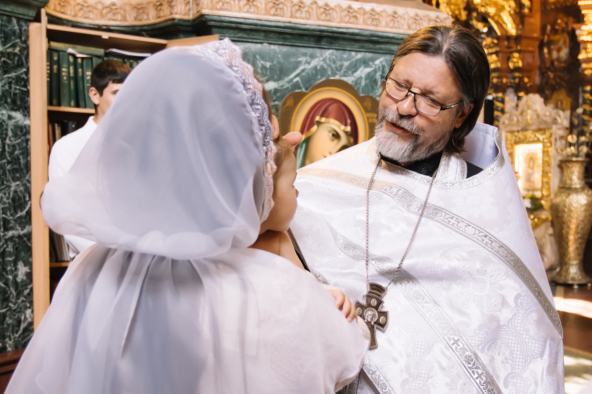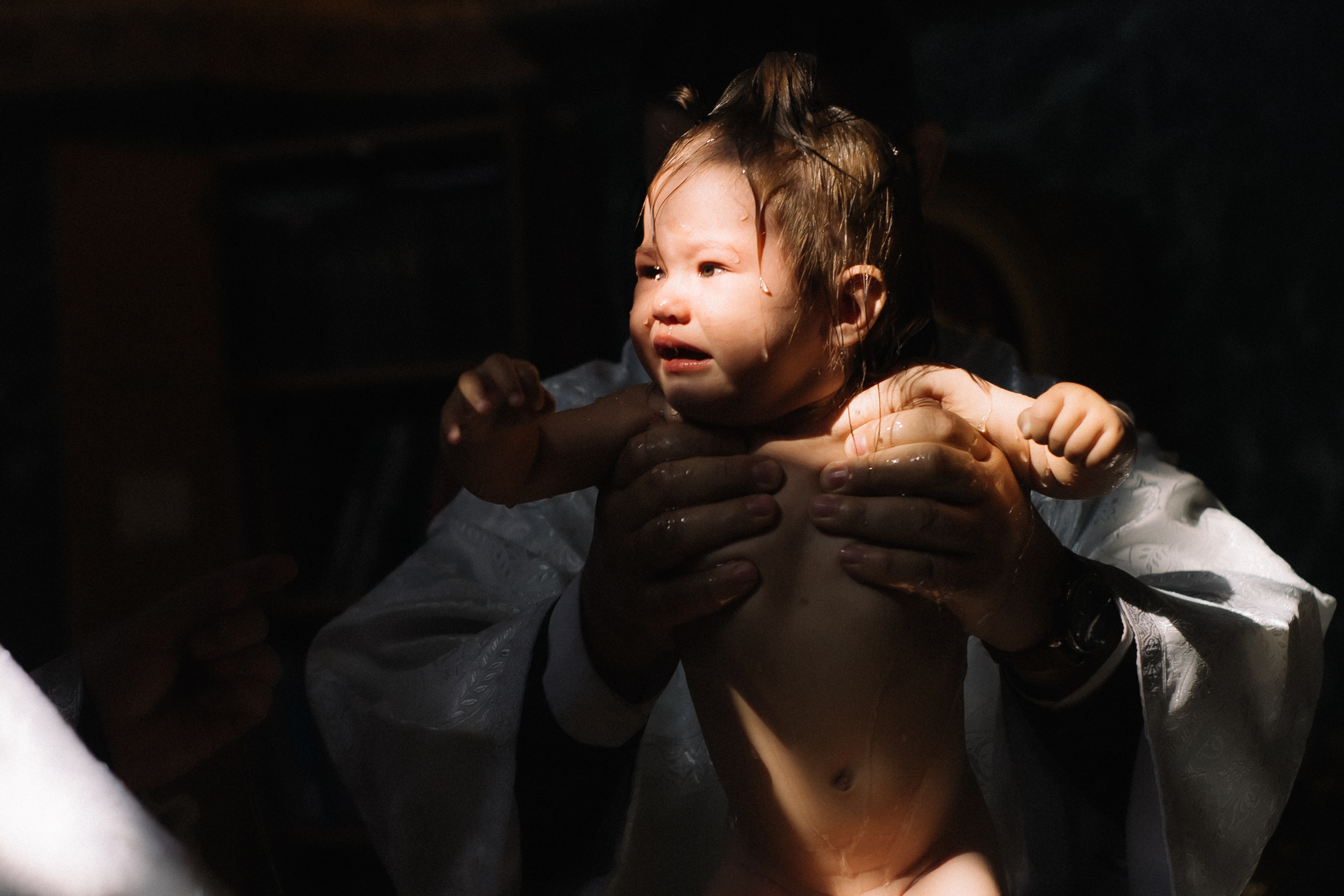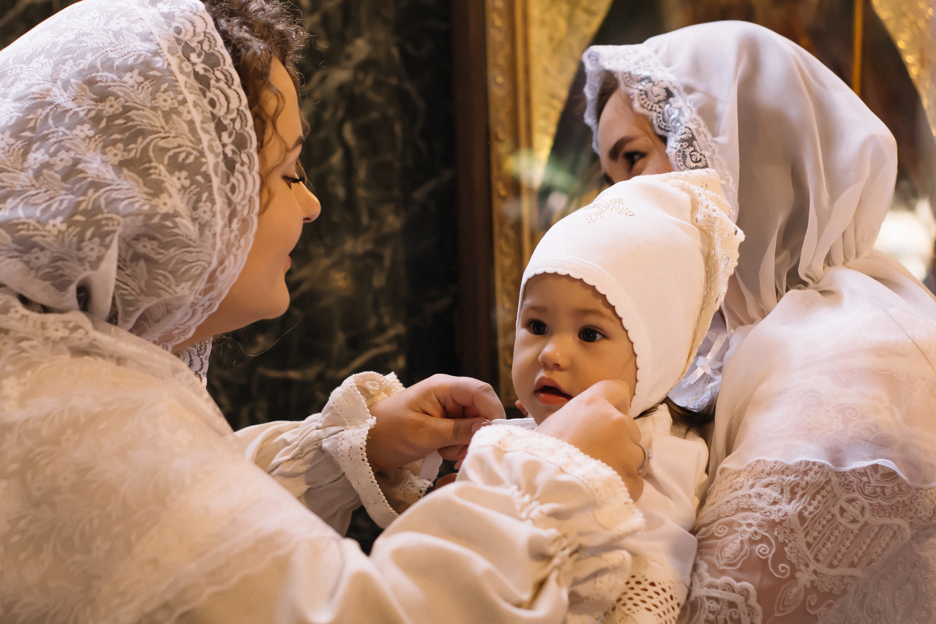 По организации. Обычно фотограф приезжает на Крещение за 30 минут до начала. Мы встречаемся около церкви, делаем общее фото, родителей с малышом, крестных, бабушек, снимаемся на фоне храма, я даю рекомендации крестным, как лучше стоять и держать ребенка. Дальше — фотосъемка непосредственно Таинства, после — можно попросить батюшку сфотографироваться с вами в Храме, сделав общую фотографию. А, если малыш в настроении — несколько постановочных кадров с мамой, папой.