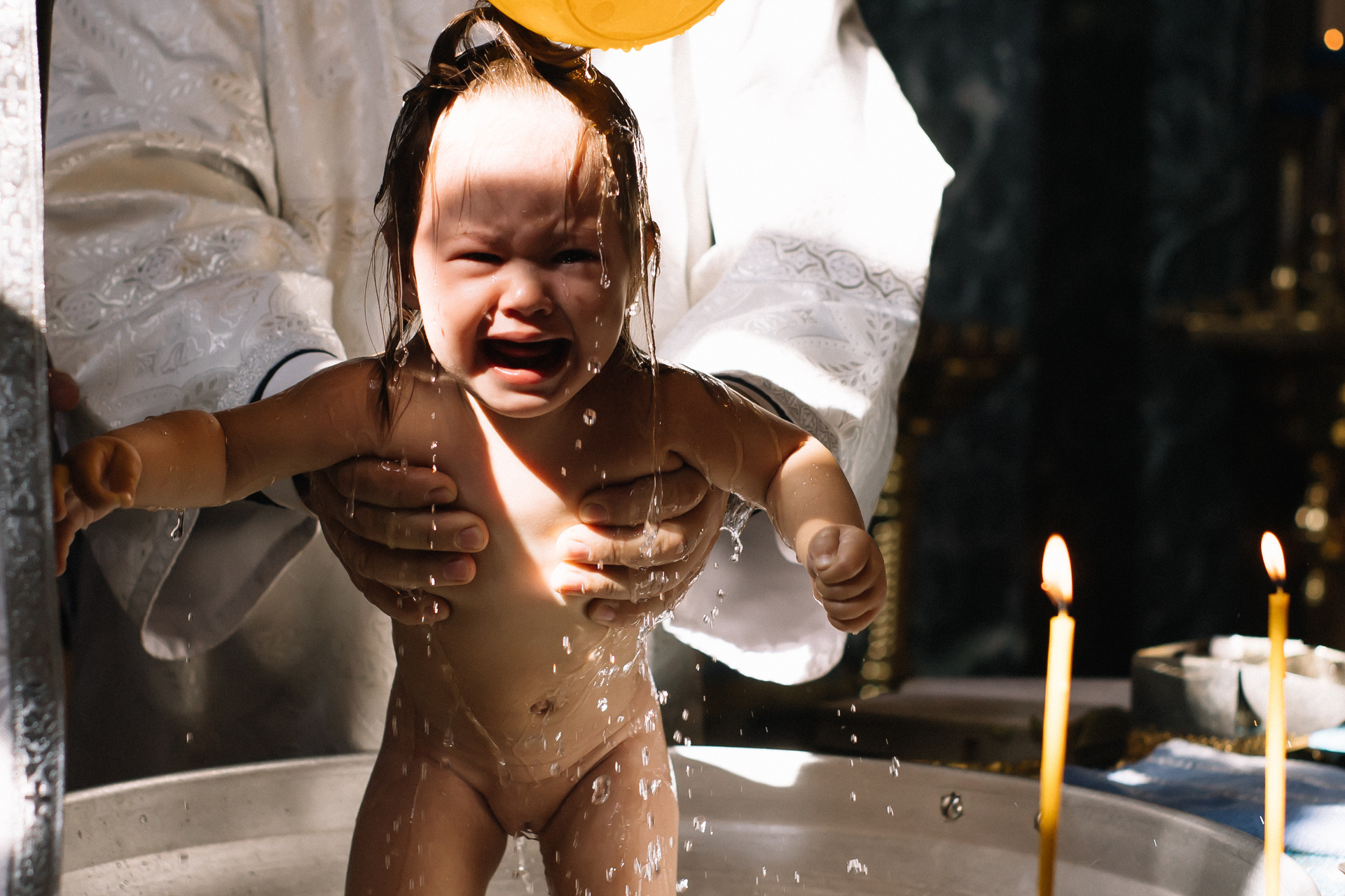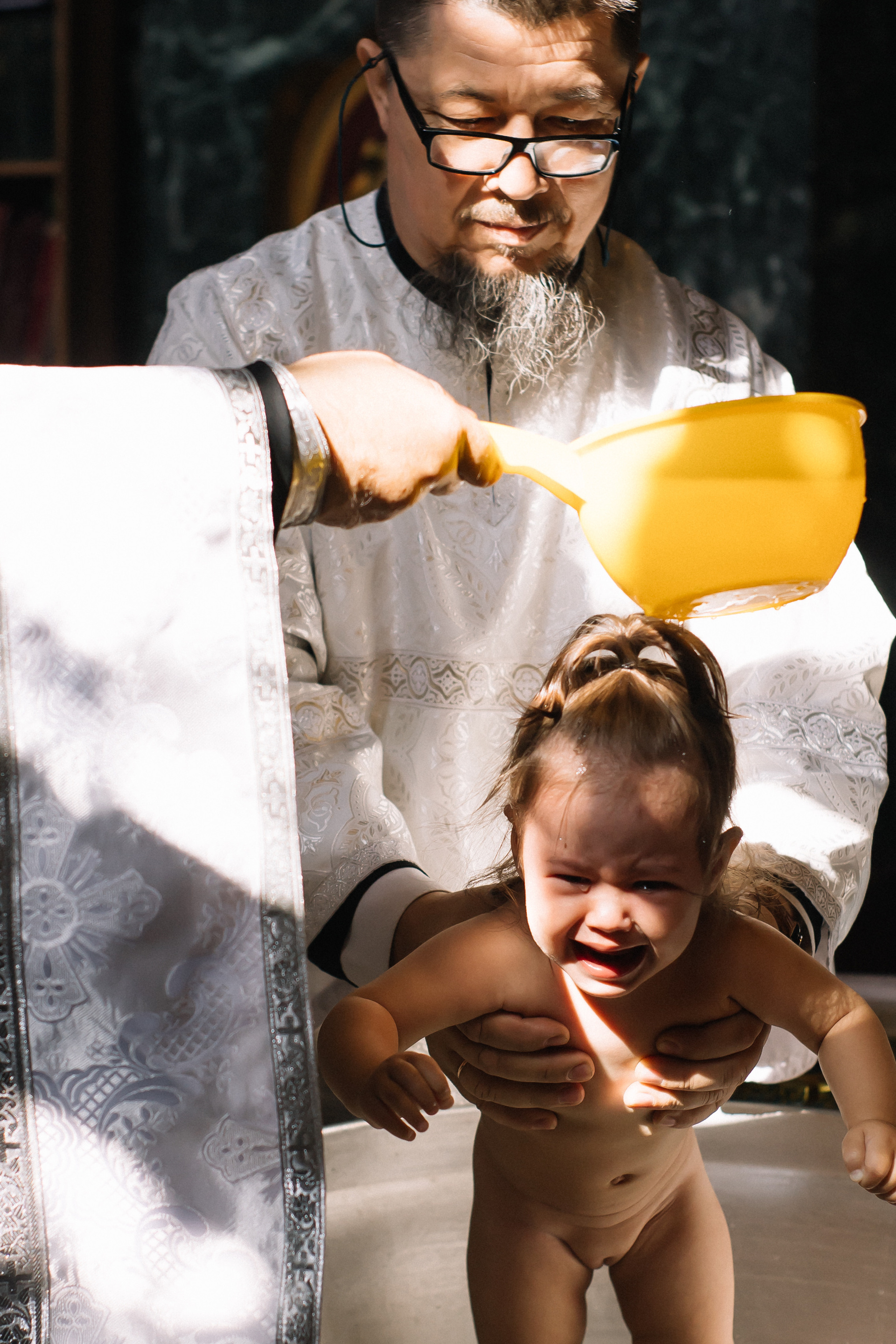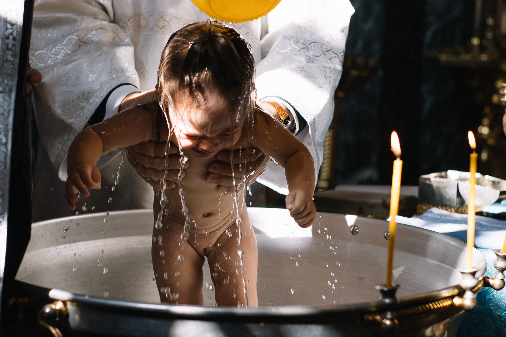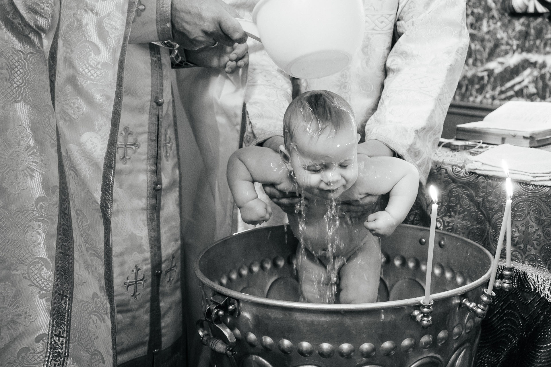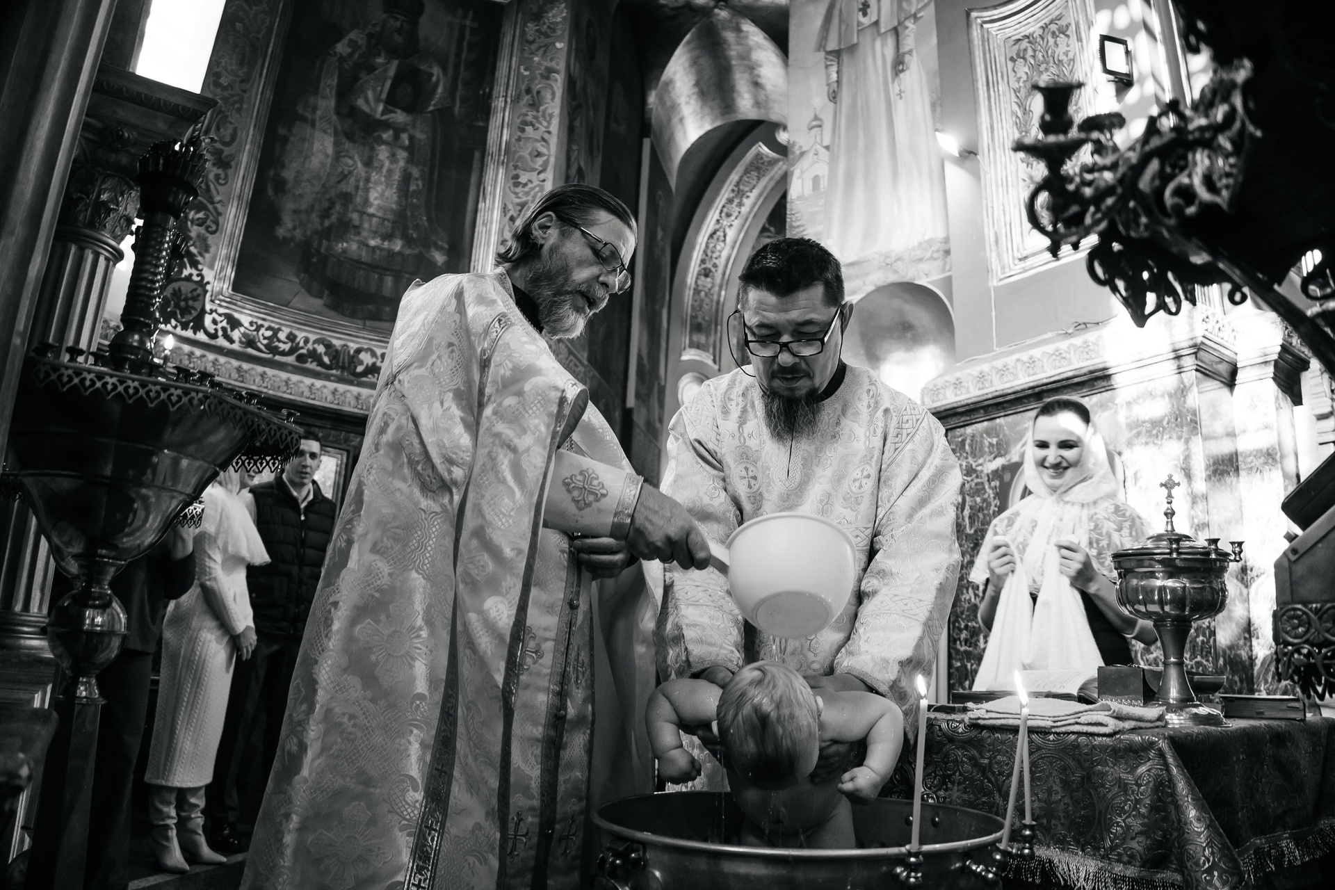 Очень рекомендую клиентам договариваться о индивидуальном Крещении, если они хотят получить хорошие фотографии. Общее Крещение — лотерея, неизвестно, сколько будет людей, сколько фотографов и что скажет батюшка, если, например, одновременно будут работать 3 человека. Сейчас в большинстве Храмов к фотосъемке относятся положительно, но, обязательно, до звонка фотографу, надо уточнить — возможно ли съемка.