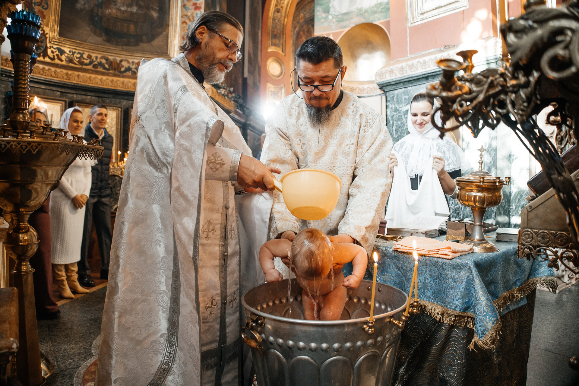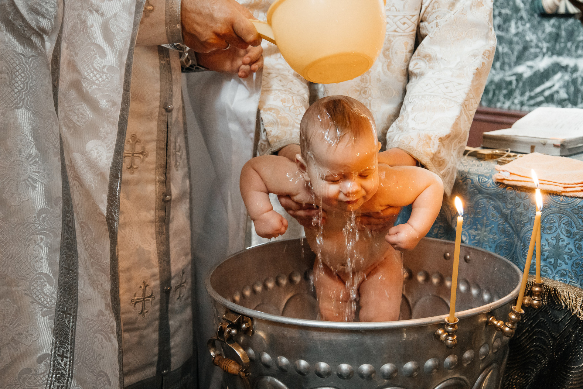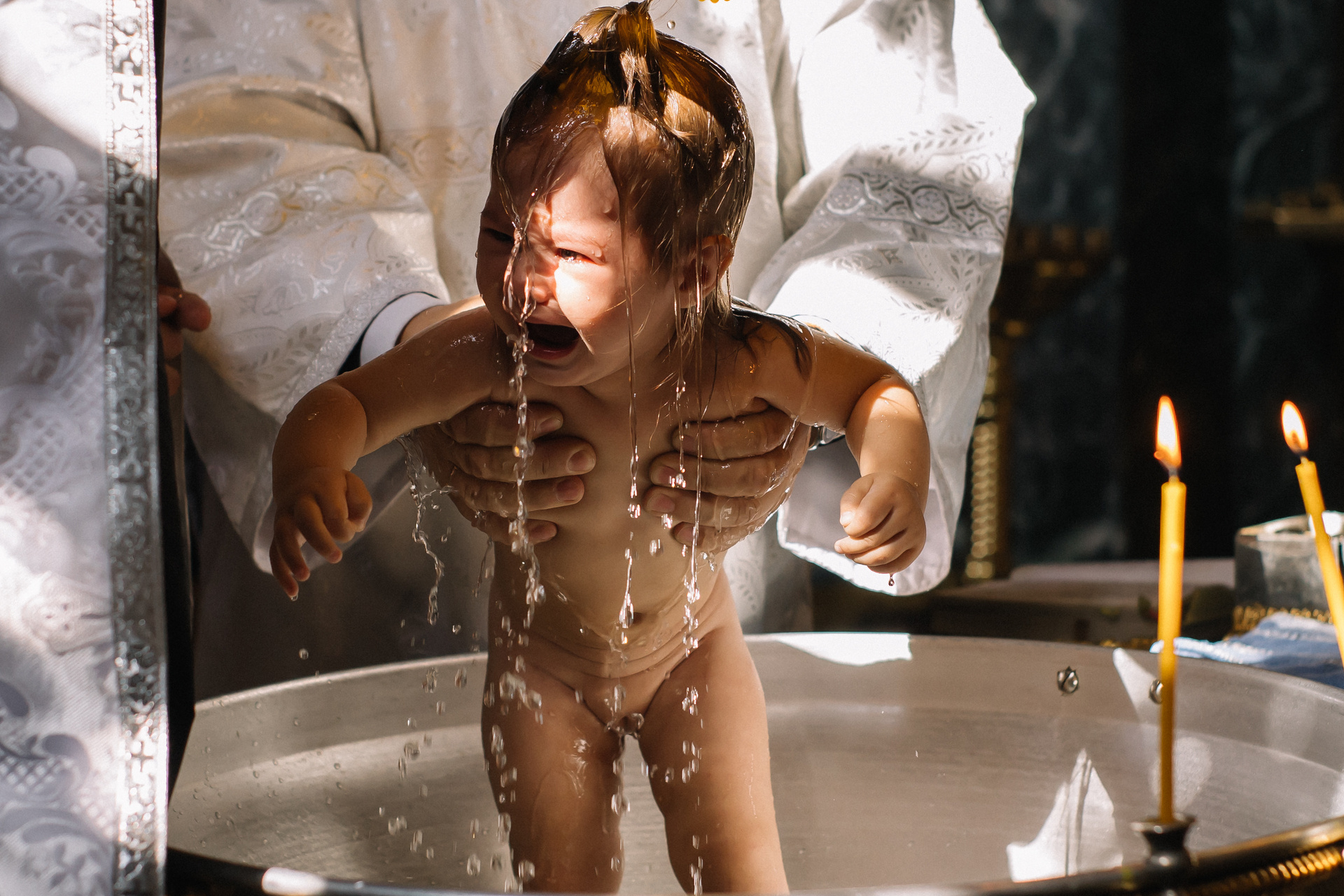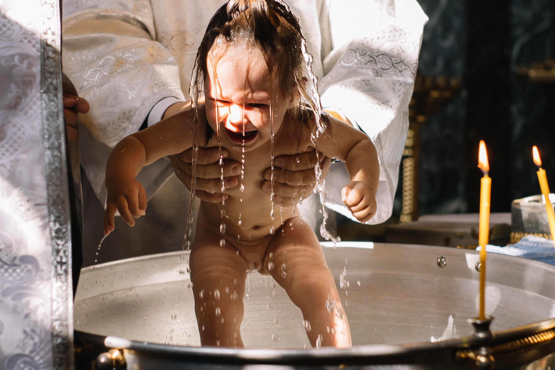 Очень рекомендую клиентам договариваться о индивидуальном Крещении, если они хотят получить хорошие фотографии. Общее Крещение — лотерея, неизвестно, сколько будет людей, сколько фотографов и что скажет батюшка, если, например, одновременно будут работать 3 человека. Сейчас в большинстве Храмов к фотосъемке относятся положительно, но, обязательно, до звонка фотографу, надо уточнить — возможно ли съемка.