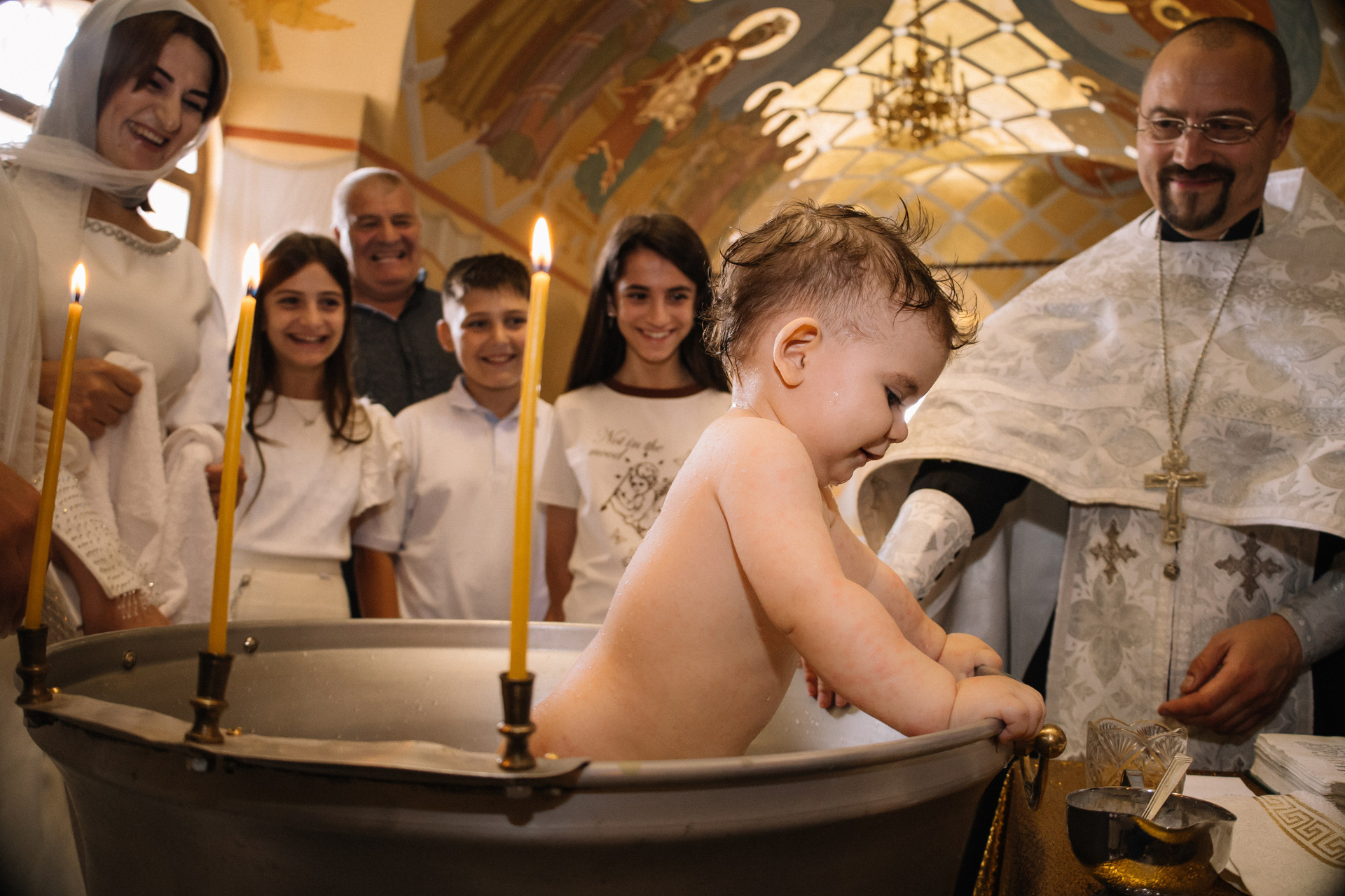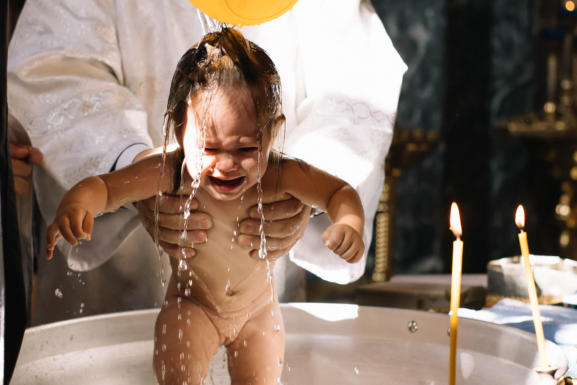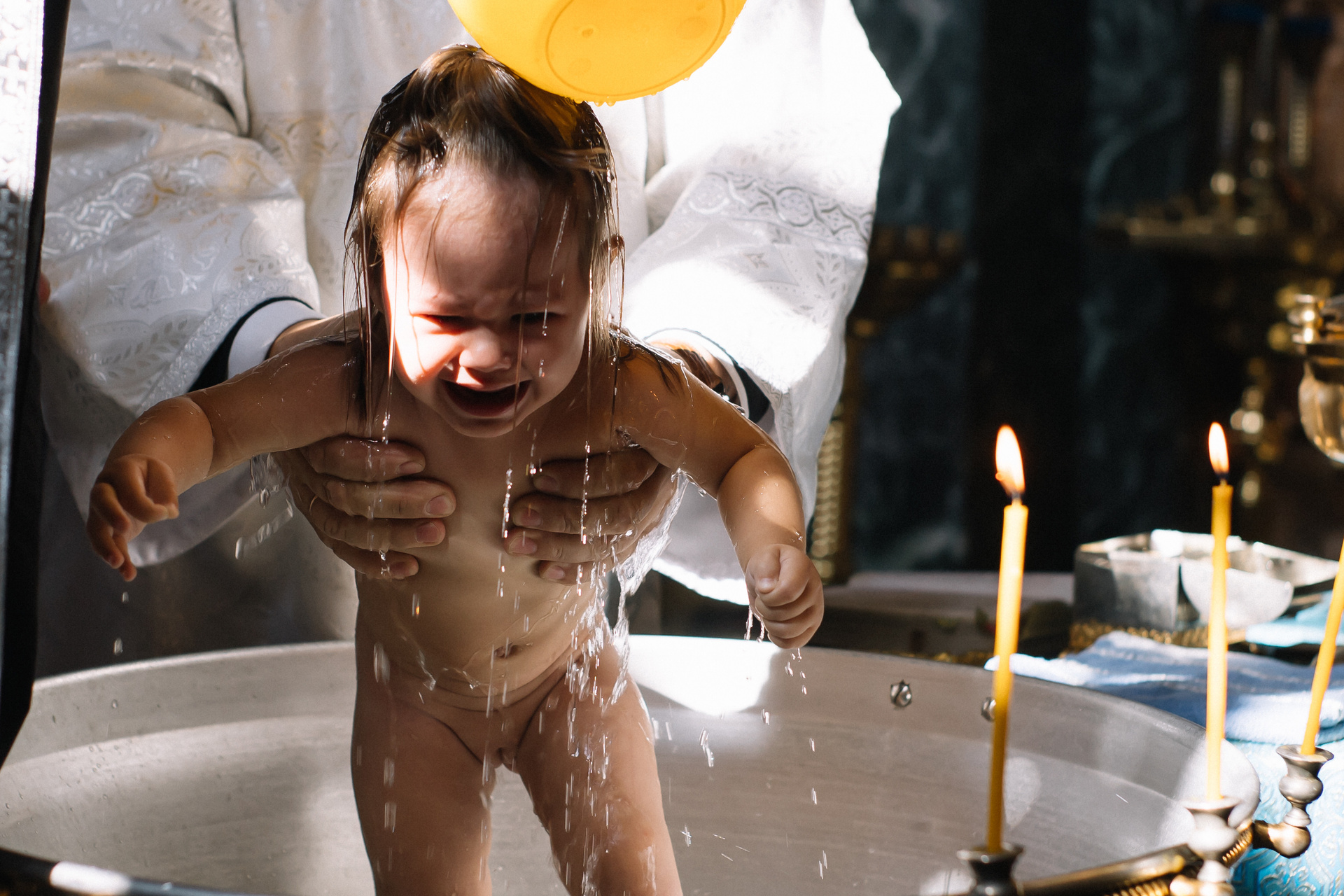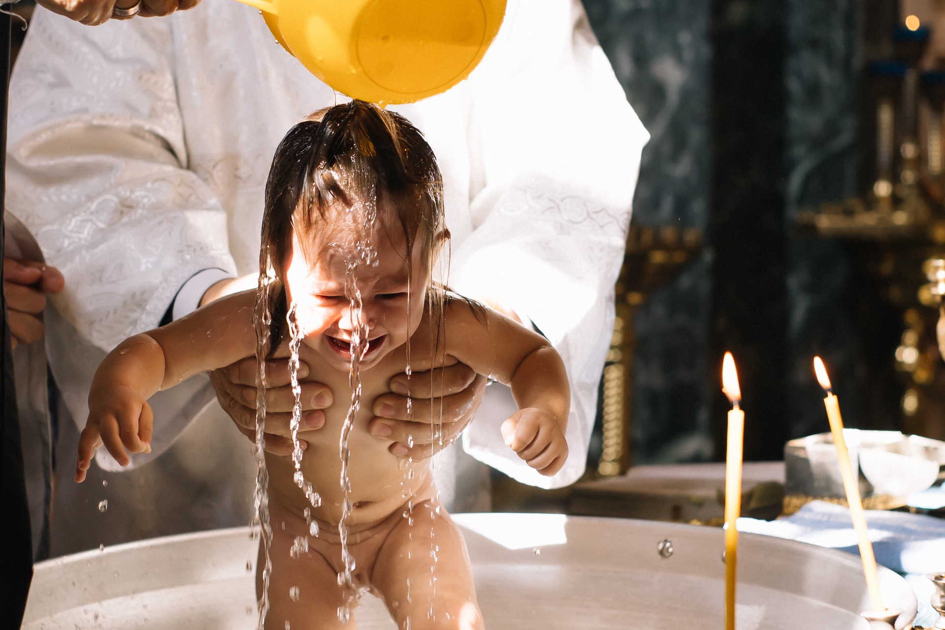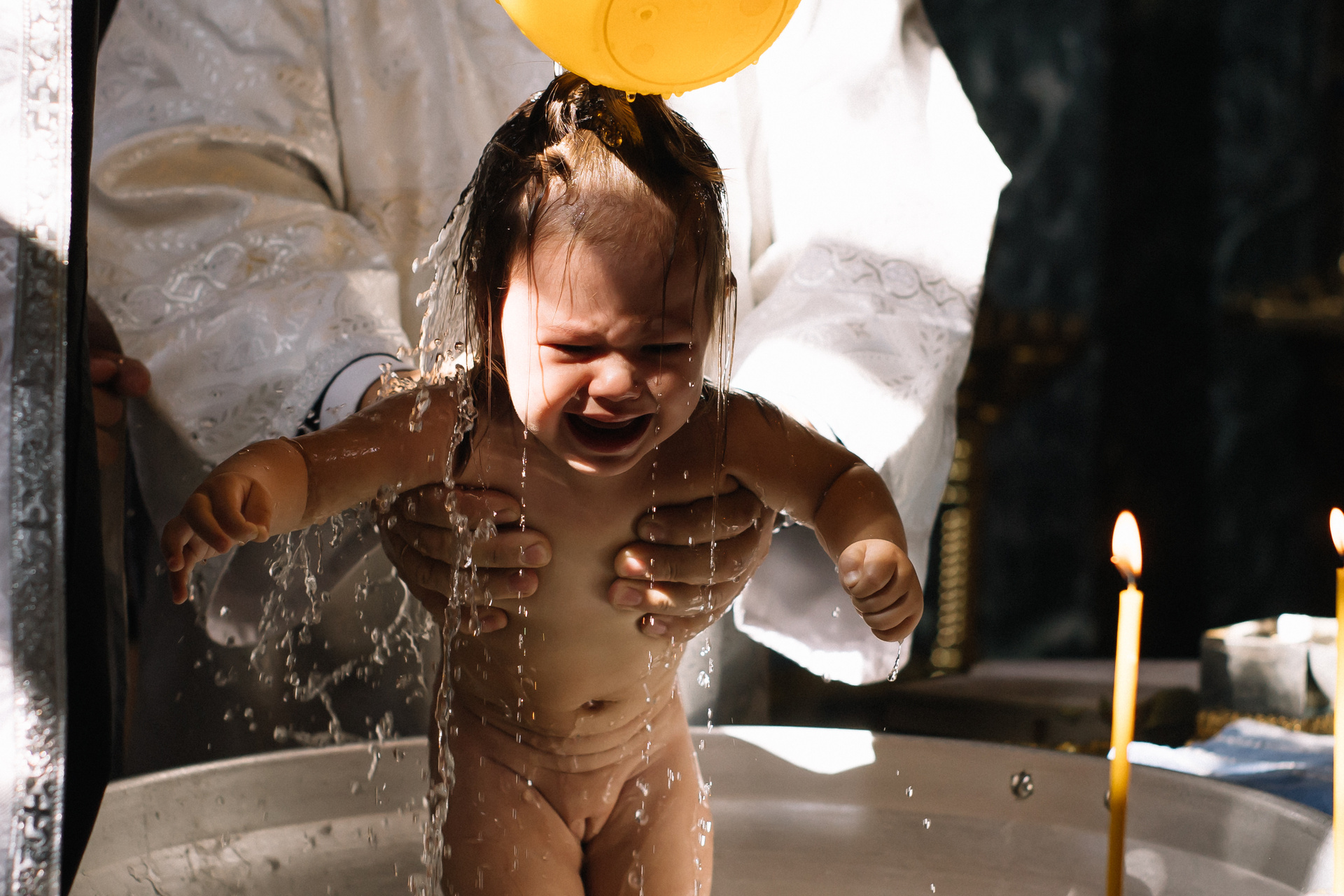 Очень рекомендую клиентам договариваться о индивидуальном Крещении, если они хотят получить хорошие фотографии. Общее Крещение — лотерея, неизвестно, сколько будет людей, сколько фотографов и что скажет батюшка, если, например, одновременно будут работать 3 человека. Сейчас в большинстве Храмов к фотосъемке относятся положительно, но, обязательно, до звонка фотографу, надо уточнить — возможно ли съемка.