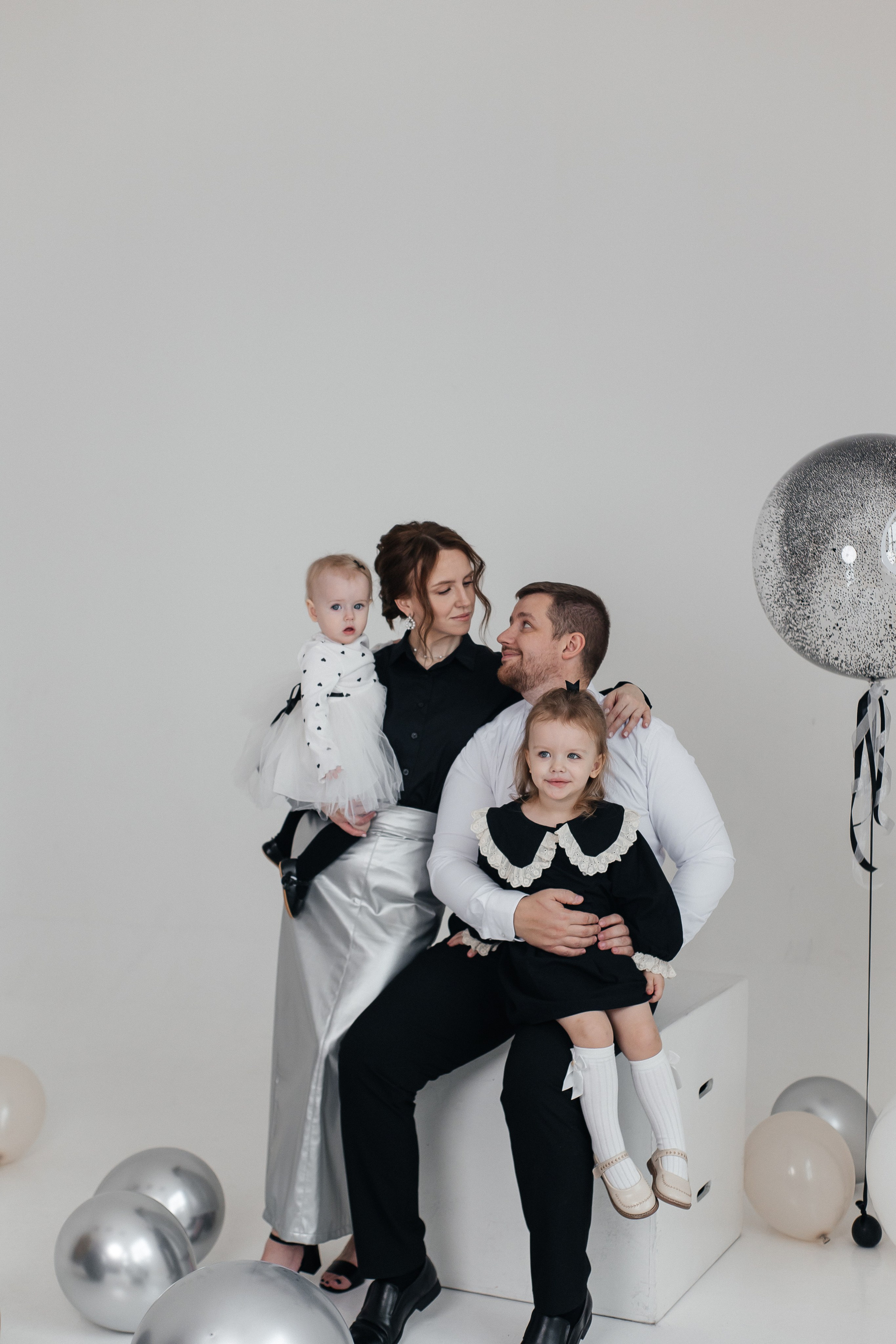 Достаточно распространены семейные фотосессии на циклораме. Такой подход позволяет полностью сконцентрироваться на эмоциях и отношениях людей в кадре. Класические и сдержанные снимки.